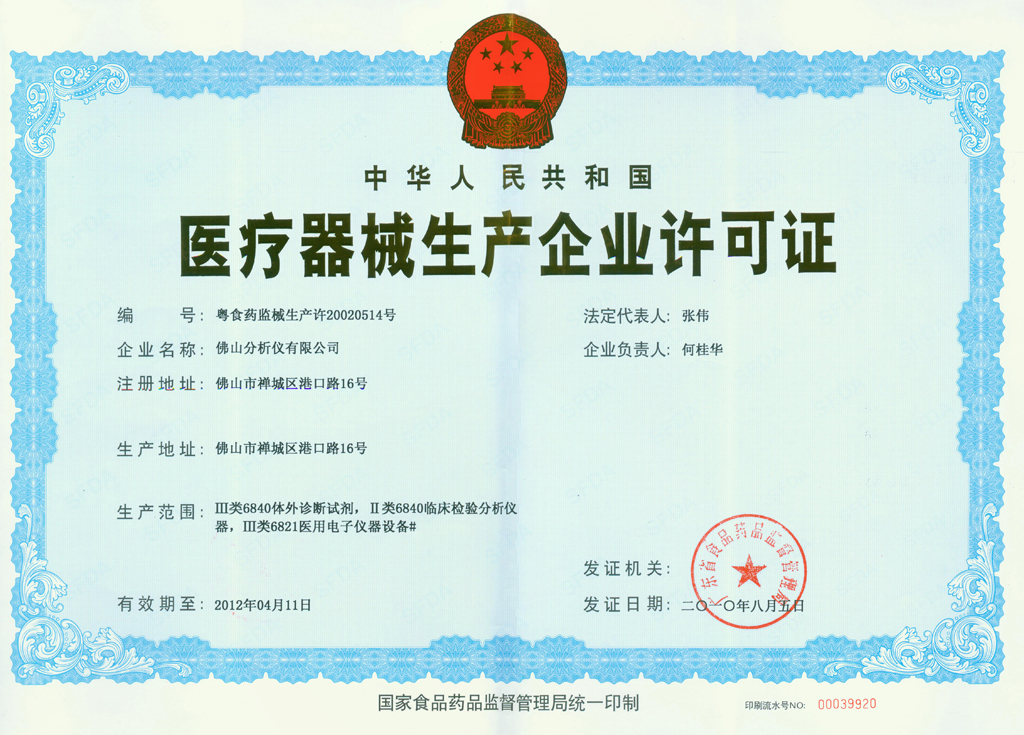 取得國(guó)家“Ⅲ類”醫(yī)療儀器生產(chǎn)許可